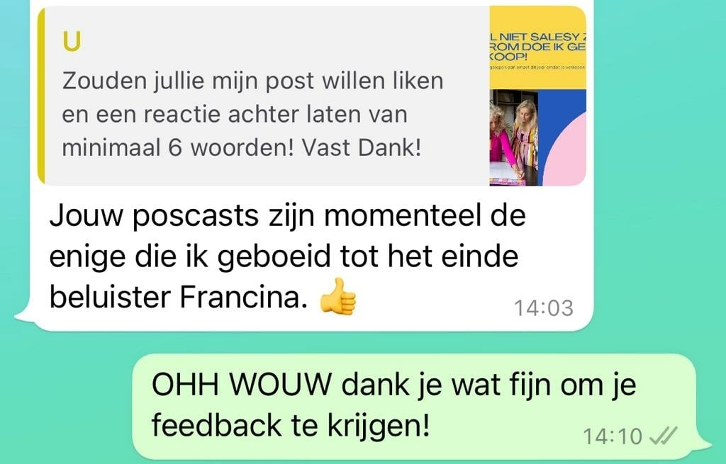 Dit is dé podcast om een succesvolle business op te bouwen door Francina van den Berg & Daisy Mulders. Ontdek de tips en inzichten op het gebied van ondernemerschap, strategie, planning, doelen stellen, marketing, (money) mindset, investeren en vermogen